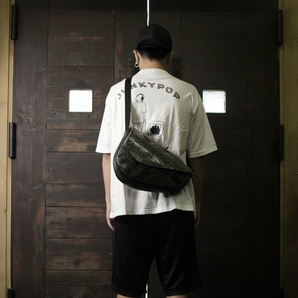 ペイズリー柄の型押しを施した、牛革を使用しています。