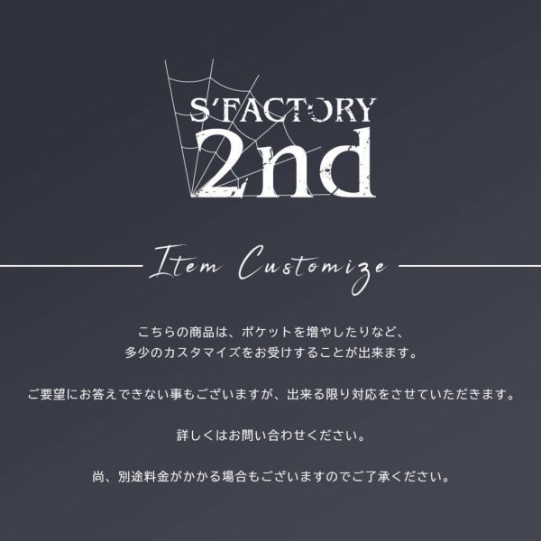 こちらの商品は、ポケットを増やしたりなど多少のカスタマイズをお受けすることが出来ます。