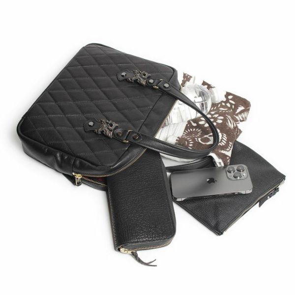 サンプルとして製作したキルティングを施したブリーフケースです。
