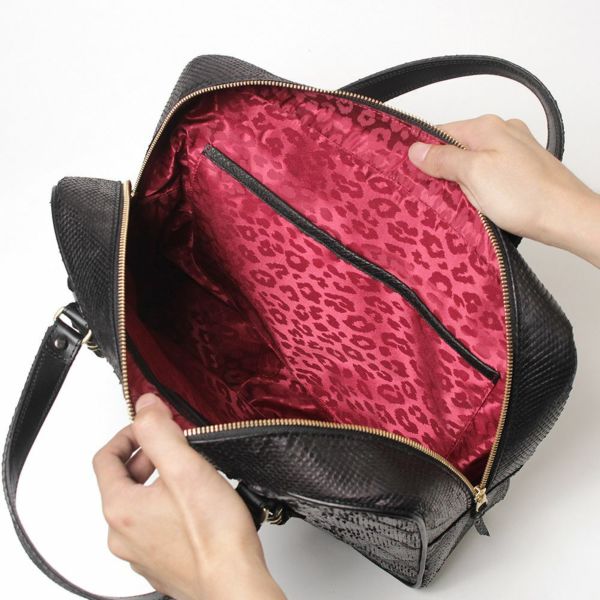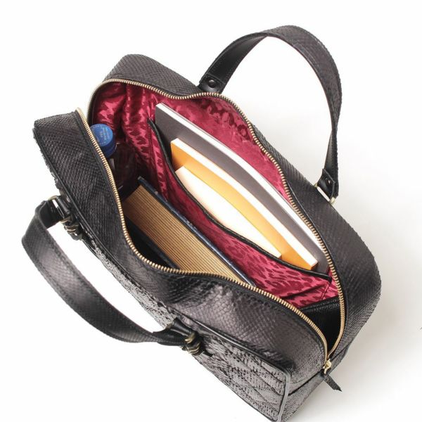 人気のダイヤモンドパイソンの背割りを、センターで2枚貼り合わせ蛇腹をアクセントにした、大変手の込んだブリーフケースです。