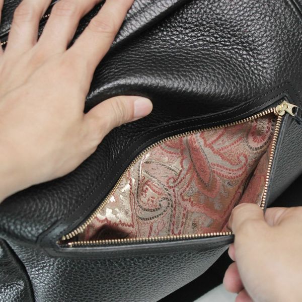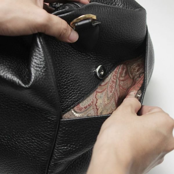 柔らかな牛革を使っていますので中身を詰め込んで入れることも出来ます。外側、内側共に収納ポケットがありますので、細かい物の収納に便利にお使い頂けるかと思います。