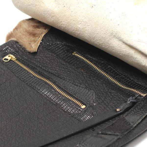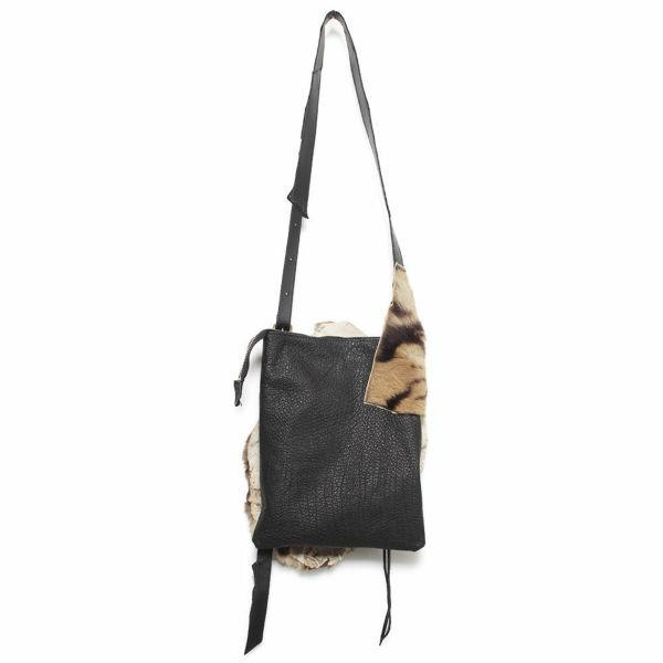メインのカバーにトラの手の毛皮を使ったショルダーバッグです。