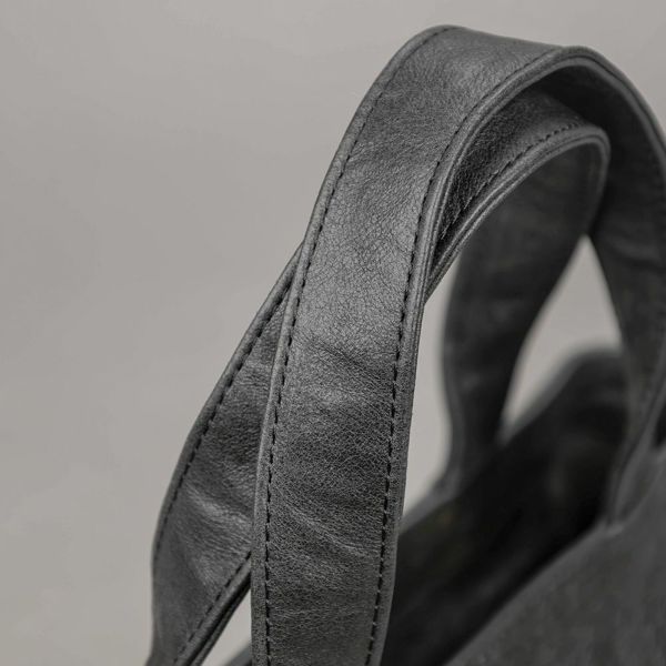 均一ではない凹凸は、まさに“天然素材が生きている証”。それぞれの表情が異なる、一点ものの黒革をお楽しみください。