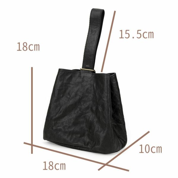 持ち手に手首を通して持つことが出来る、シンプルな巾着型のバッグです。