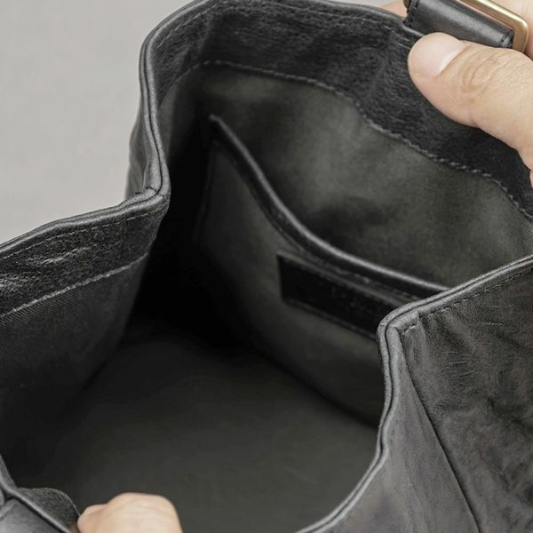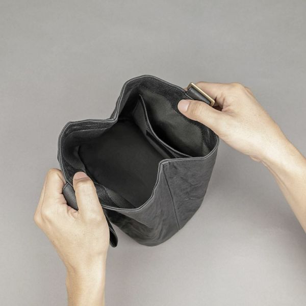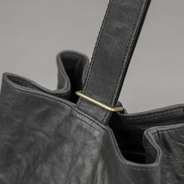 均一ではない凹凸は、まさに“天然素材が生きている証”。それぞれの表情が異なる、一点ものの黒革をお楽しみください。