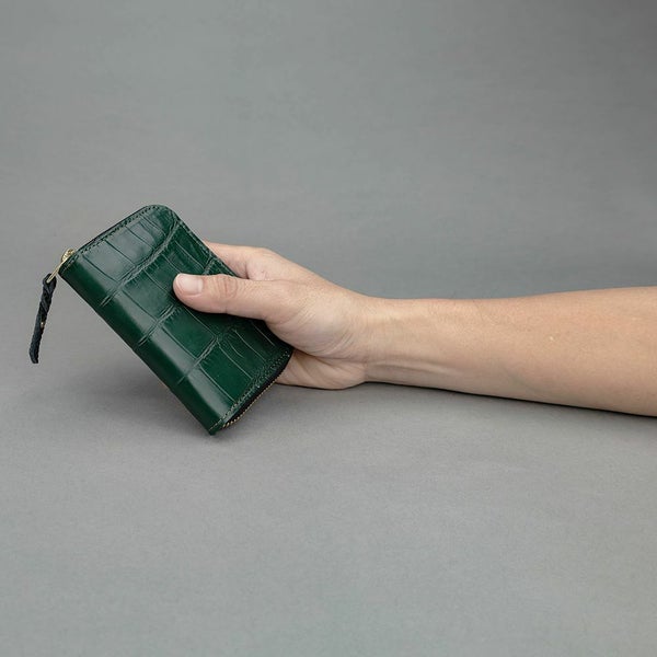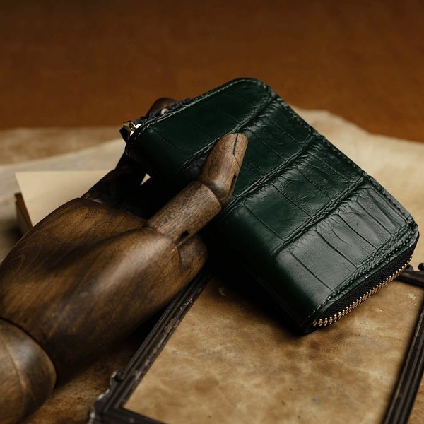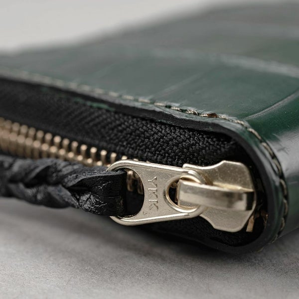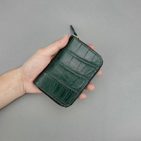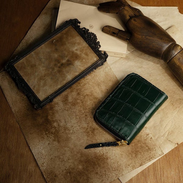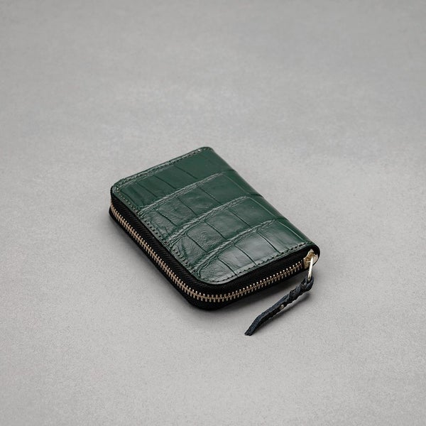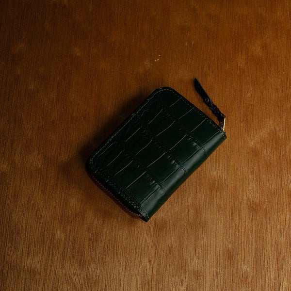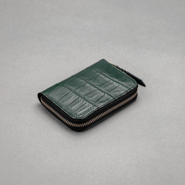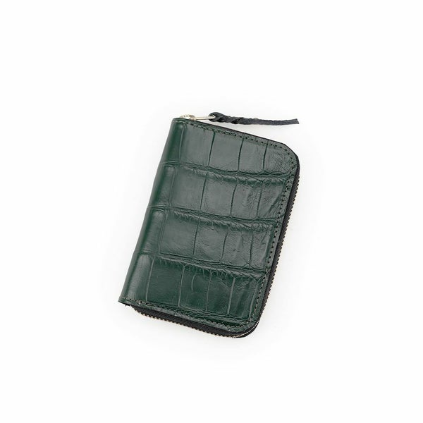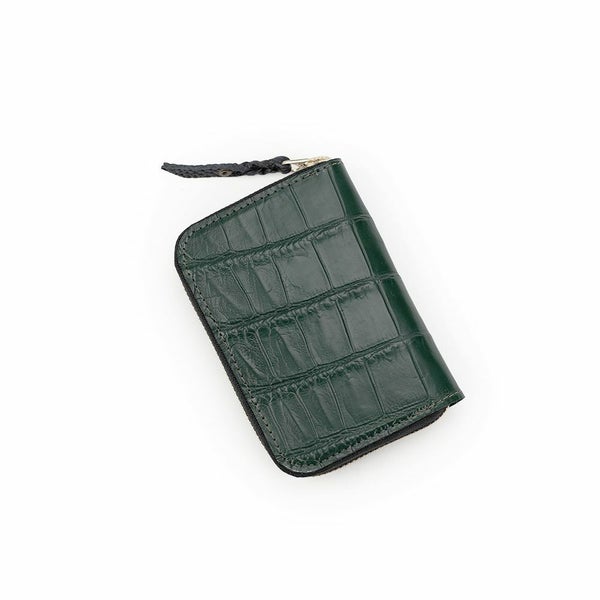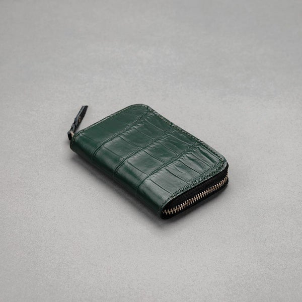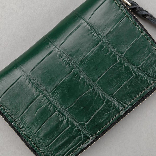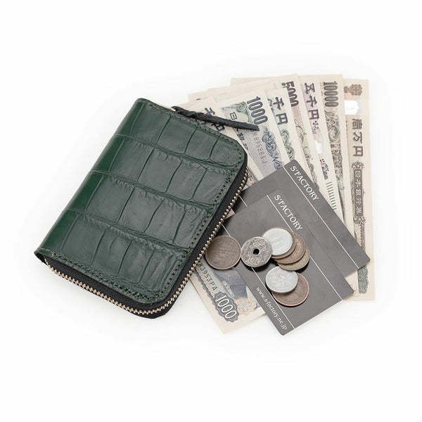 S'FACTORY限定アイテム│ファスナーウォレット 1点限定 ファスナーミニウォレット オリーブグリーン スモールクロコダイル ポロサス (ワニ革)
