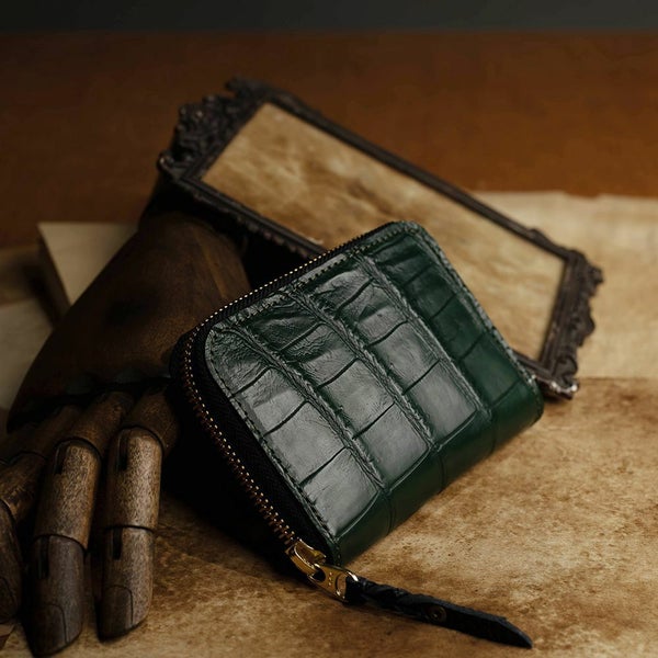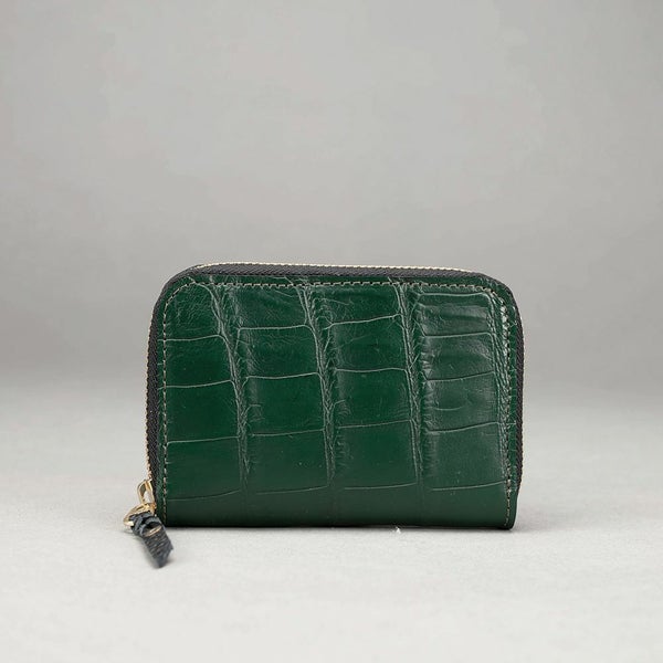 4. 1点限定 ファスナーミニウォレット オリーブグリーン スモールクロコダイル ポロサス (ワニ革)
