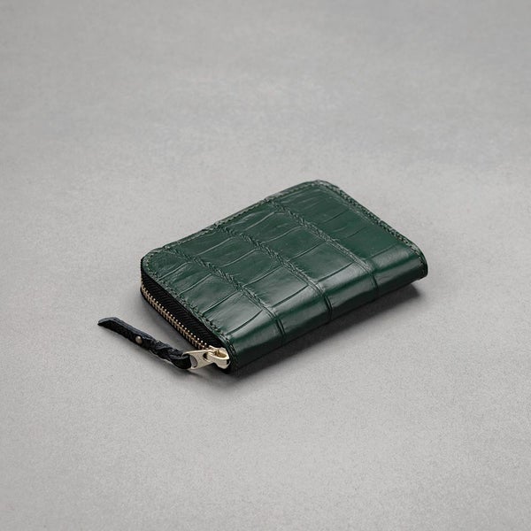 3. 1点限定 ファスナーミニウォレット オリーブグリーン スモールクロコダイル ポロサス (ワニ革)
