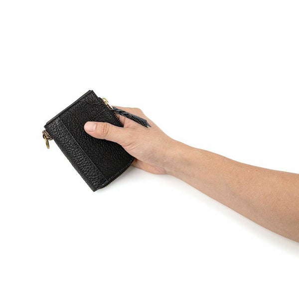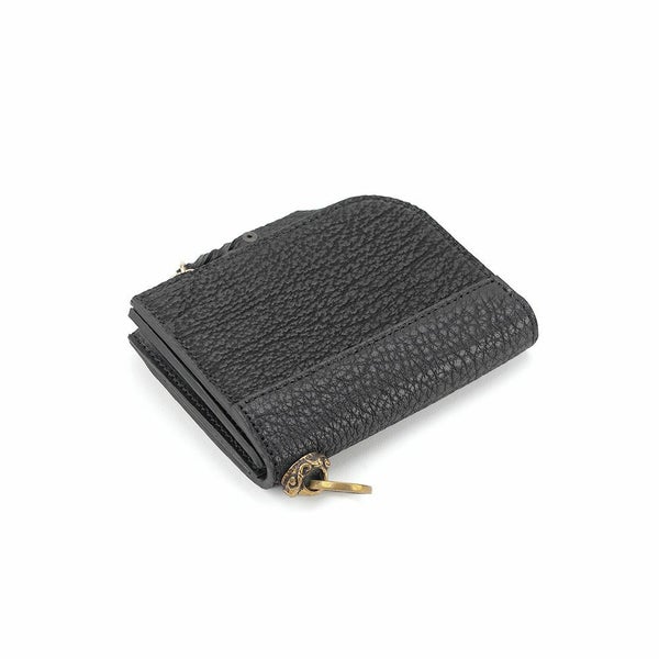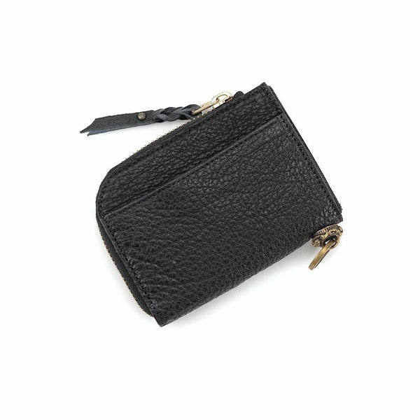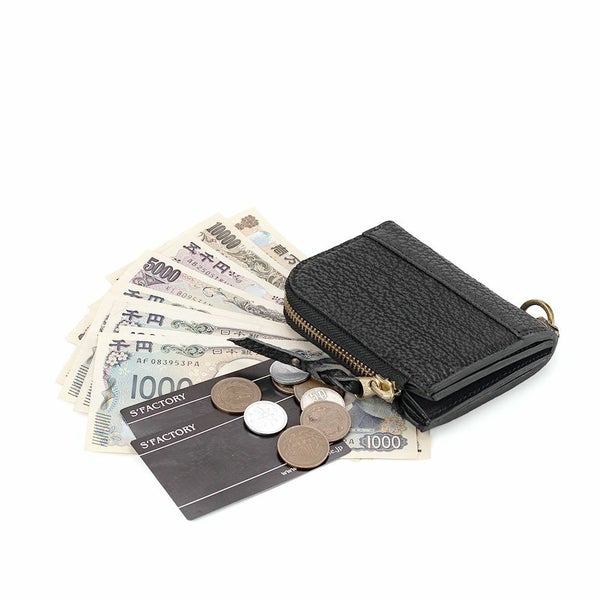 使いやすいサイズに収めたL字のファスナーウォレットです。小銭入れ部分にもマチが付いていますので。口が大きく開き取り出しやすい作りになっています。カードポケットは内側に4箇所、外に1箇所となっています。ファスナーにはYKKのファスナーを使用しています。