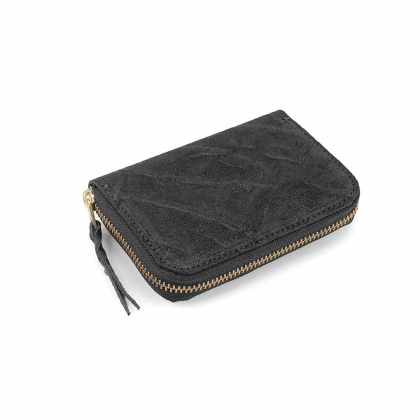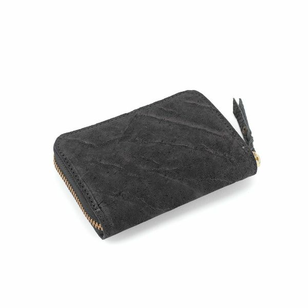 ンパクトなラウンドファスナータイプの財布です。極力コンパクトにまとめ、手に収まりやすいサイズ感に仕上げています。左カード入れの下にはメモ、領収書、カードをまとめて入れられるような多目的ポケットになっています。右カードポケットの下に取り付けられた、小銭入れは中身が見えやすく、取り出しやすいBOX型の小銭入れになっています。札入れ部分も深さがあり大きく開くので中身が見えやすく、取り出しやすい作りとなっています。