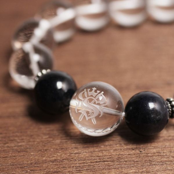 センターの水晶には、S'FACTORYのエンブレムを彫り込んでいます。金属パーツはSilver925です。