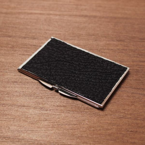 サメ革を貼った金属製の名刺入れです。
