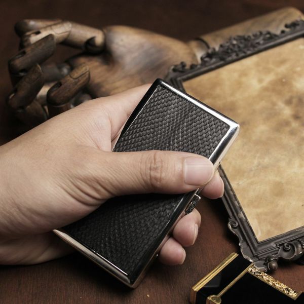 4. メタルシガレットケース 12本タイプ パイソンレザー(ヘビ革)