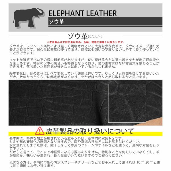 ゾウ革のカラーは全1色、パーツは真鍮(ゴールド)か白銅(シルバー)の2色からお選びいただけます。パーツに関しては”取り付けない”という選択肢も御座いますので、お好みに合わせてお選び下さい。