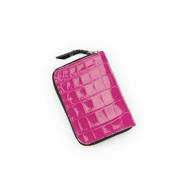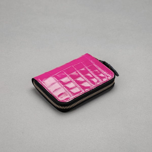4. 1点限定 ファスナーミニウォレット シャイニングピンク スモールクロコダイル ポロサス (ワニ革)