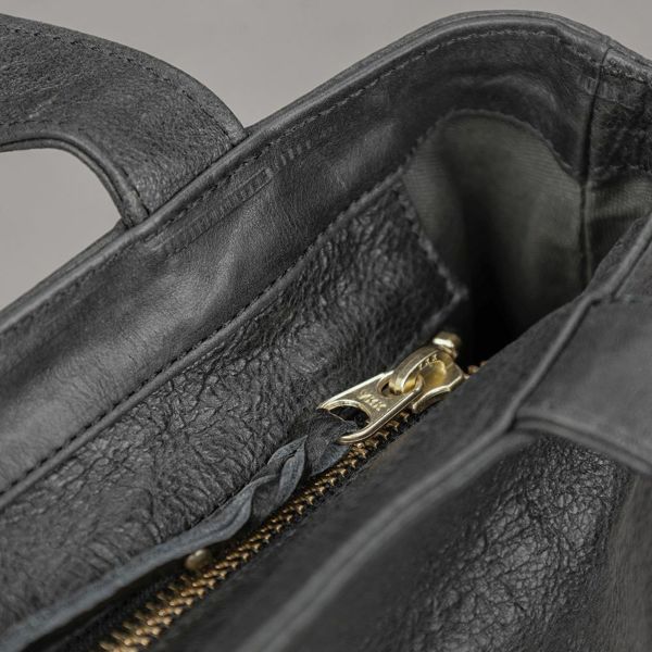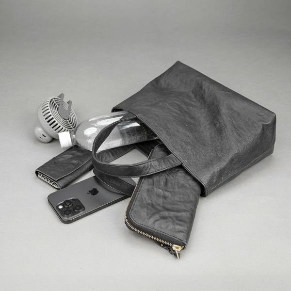均一ではない凹凸は、まさに“天然素材が生きている証”。それぞれの表情が異なる、一点ものの黒革をお楽しみください。