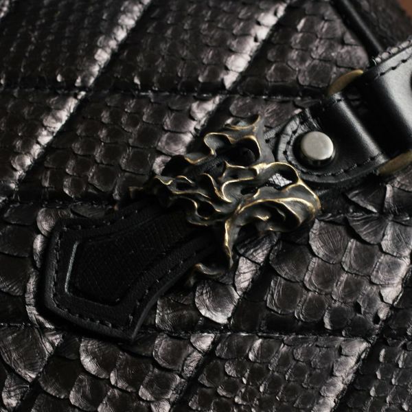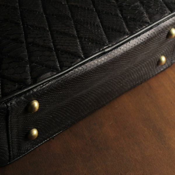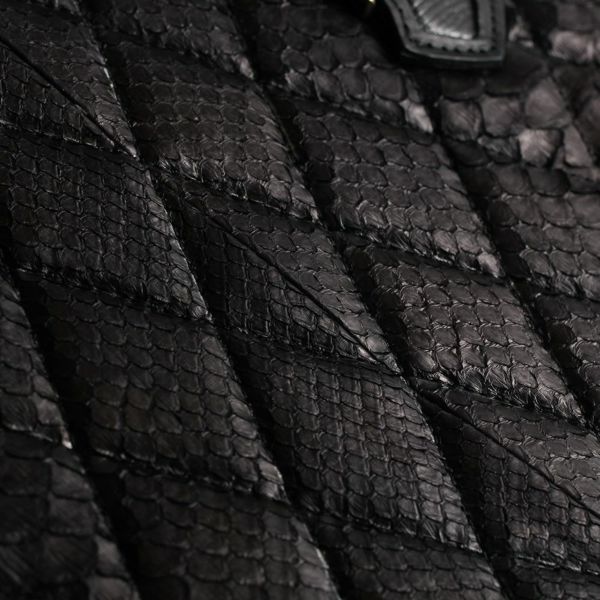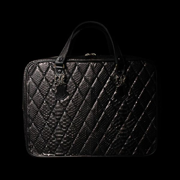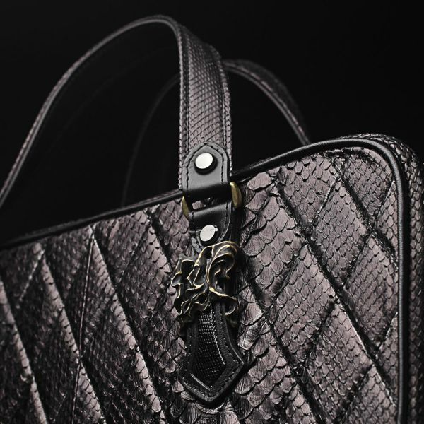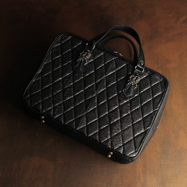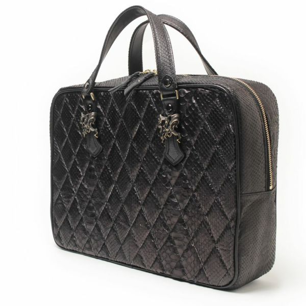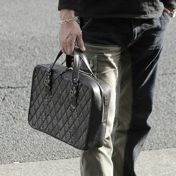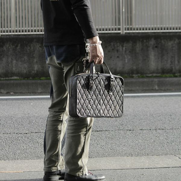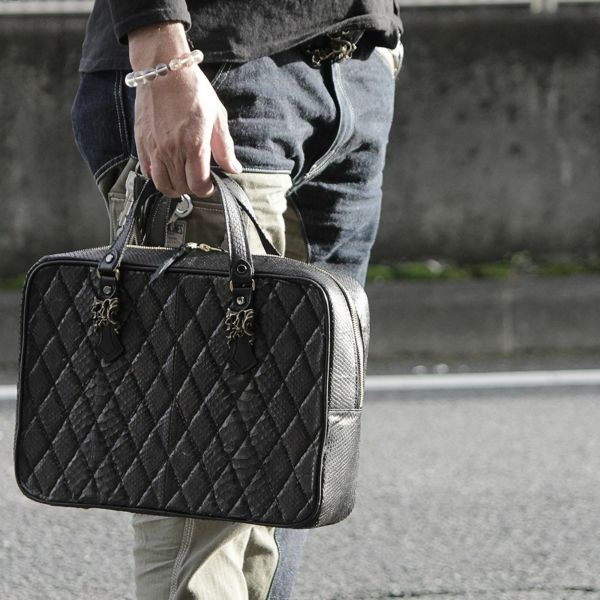 人気のダイヤモンドパイソンの背割りを、センターで2枚貼り合わせ蛇腹をアクセントにした、大変手の込んだブリーフケースです。