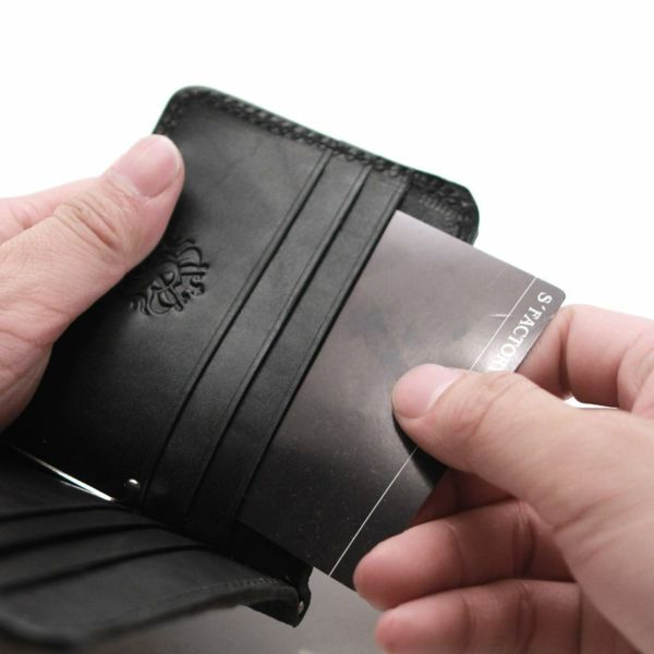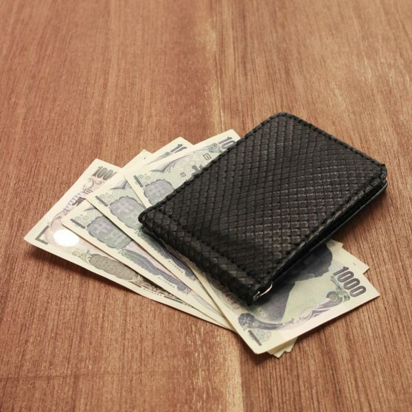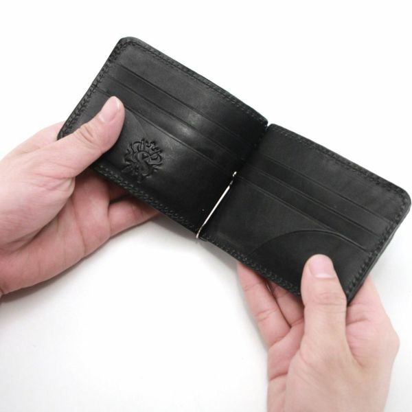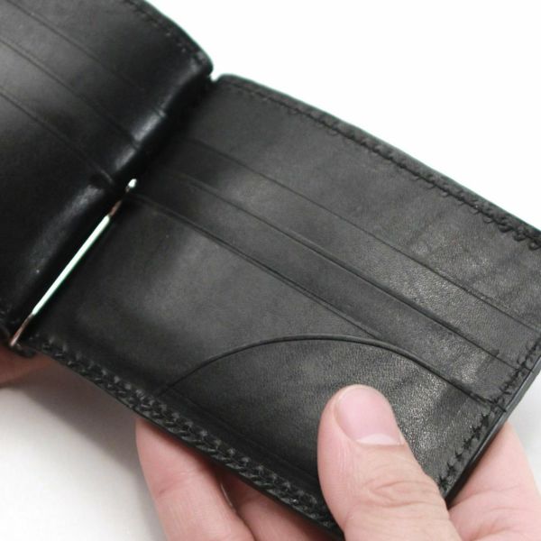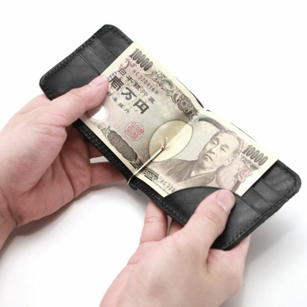 薄く、たっぷりとカードを収納できるレザーマネークリップです。