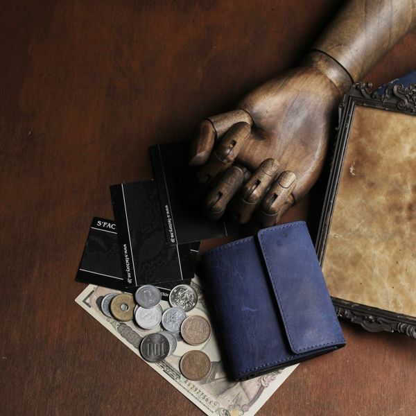少数仕入れた素材を使い製作した、三つ折りのコンパクトな財布です。個数限定アイテムの為、再入荷の予定は御座いません。