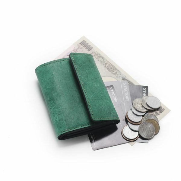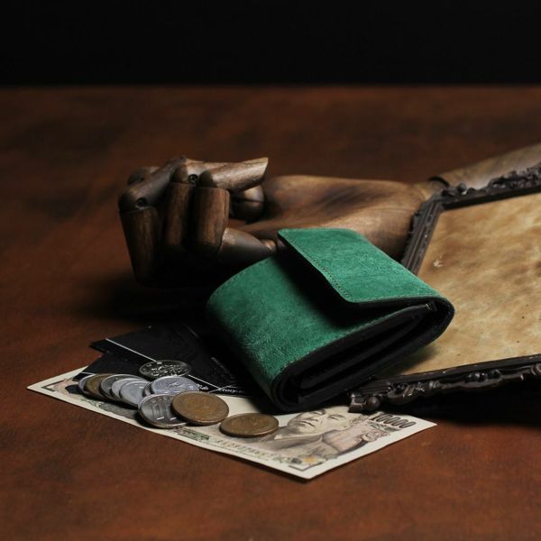 少数仕入れた素材を使い製作した、三つ折りのコンパクトな財布です。個数限定アイテムの為、再入荷の予定は御座いません。