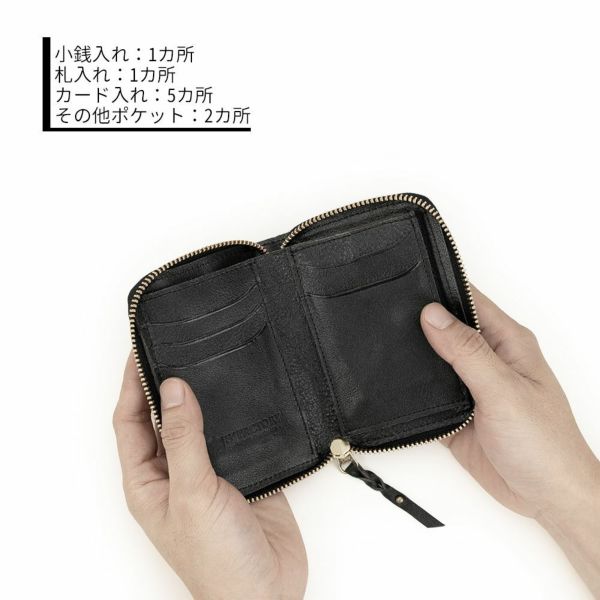 右カードポケットの下に取り付けられた、小銭入れは中身が見えやすく、取り出しやすいBOX型の小銭入れになっています。