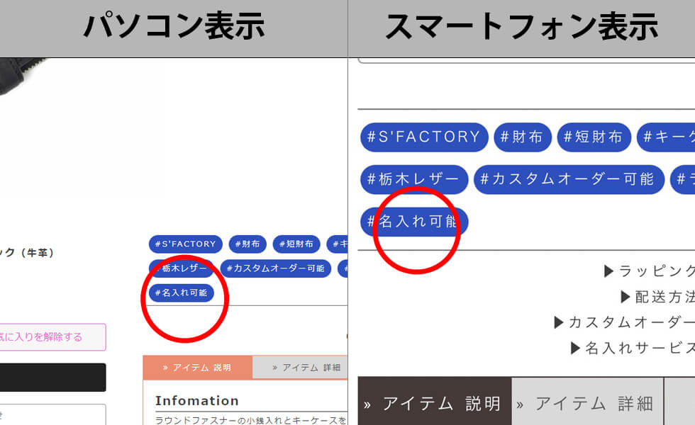 商品タグに【 名入れ対応可能 】と記載がある商品が対象商品となります。