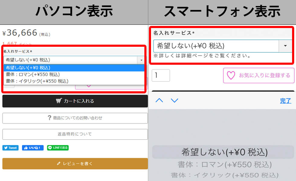 名入れサービスは、商品にお好きな文字を入れることの出来るサービスとなっています。