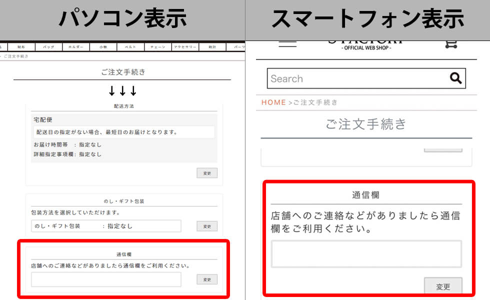 ご注文手続きの通信欄に刻印してほしい文字をご記入下さい。