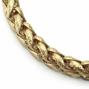 真鍮(ブラス)素材のウォレットチェーンです。内側に模様が入った喜平型になっています。