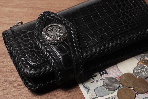 縁を編み込んだバイカーズタイプのウォレットです。額縁部分を編みこみ、ボディにはクッションを埋め込み立体的に仕上げています。使い込んでいく毎に、革の変化を感じられるアイテムになっています。