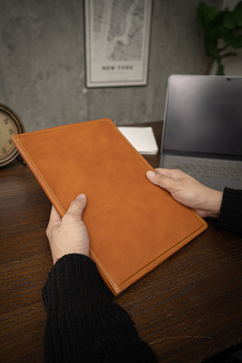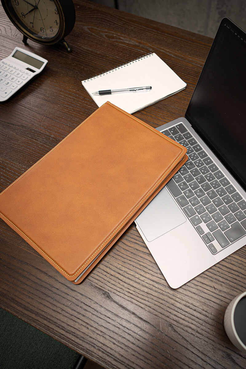 書類をしっかり保持し、整理できるので重要な文書やプレゼンテーション資料をしっかりと保持出来ます。ポケットもいくつか付いているので、突発的なメモや名刺などをスマートに収納可能です。