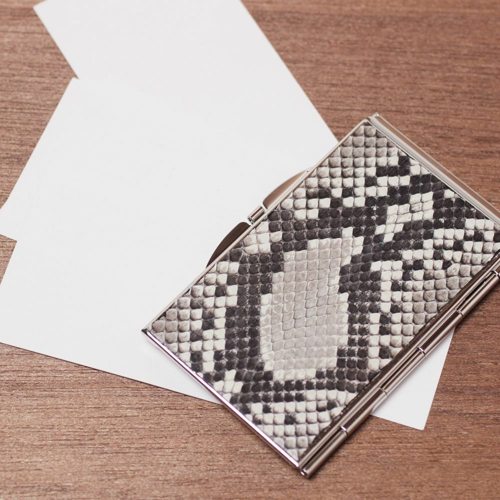 他の画像を見る S'FACTORY│名刺入れ│パスケース メタル名刺入れ ブラックパイソン(ヘビ革) 通常価格 ¥ 5,445 ¥ 4,950 税込 素材:ヘビ革(パイソン) カートに入れる お気に入りに登録する