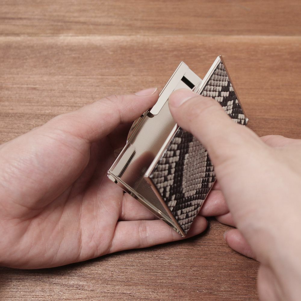 他の画像を見る S'FACTORY│ウォレットホルダー ウォレットホルダー05 ブラックパイソン(ヘビ革) 通常価格 ¥ 30,250 ¥ 27,500 税込 素材:ヘビ革(パイソン) 詳細を見る お気に入りに登録する
