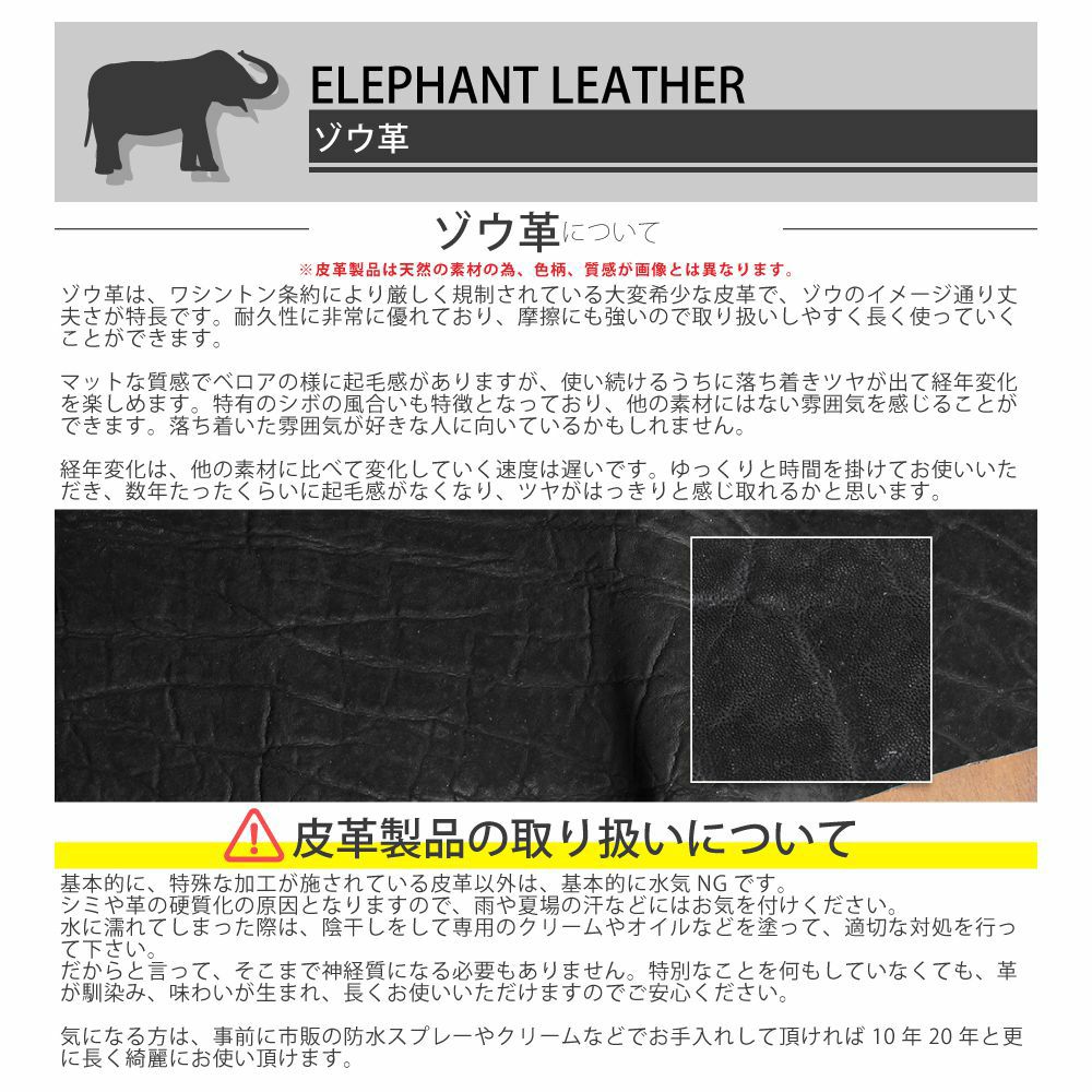 他の画像を見る S'FACTORY│喫煙具 ライターケース ブラックエレファント(ゾウ革) 通常価格 ¥ 4,598 ¥ 4,180 税込 素材:ゾウ革(エレファント) 詳細を見る お気に入りに登録する